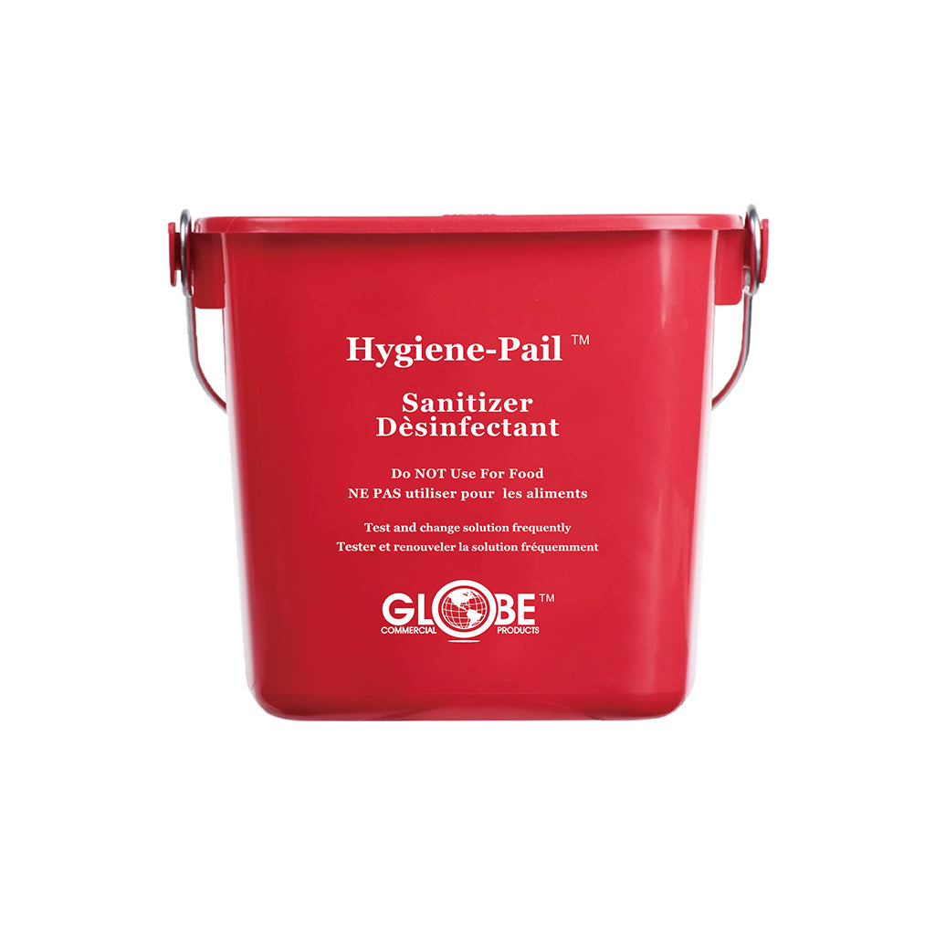 Hygiene–Pail® cumple con las pautas HACCP como contenedores etiquetados de uso exclusivo para soluciones de limpieza y desinfección. La codificación por colores ayuda a minimizar cualquier posible confusión entre las soluciones de limpieza y desinfección para sus paños de limpieza. Utilice Hygiene–Pails® verdes para las soluciones de limpieza y Hygiene–Pails® rojos para las soluciones desinfectantes. Los cubos están disponibles en tamaños de 3Qt y 6Qt para aplicaciones frontales y traseras del hogar.