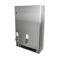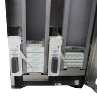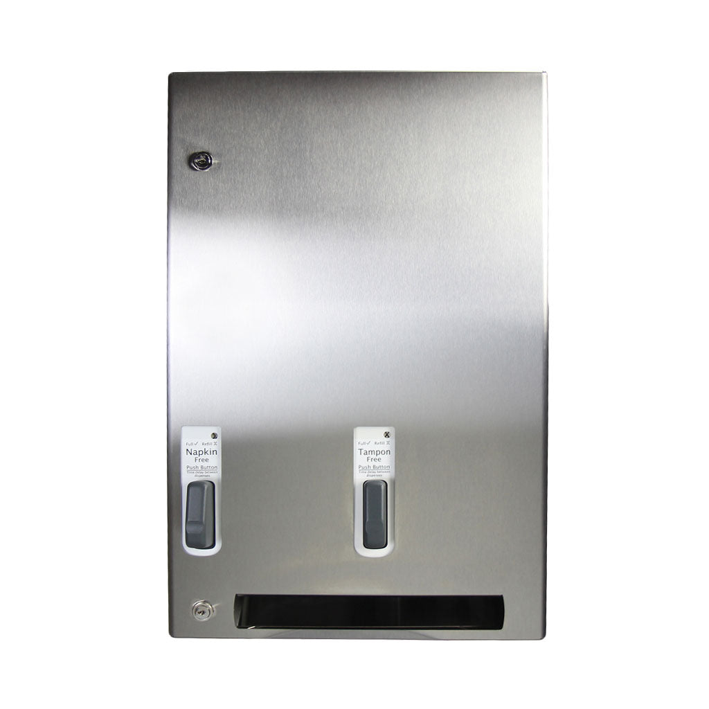 El dispensador de productos menstruales con botón pulsador gratuito para compresas y tampones es una unidad duradera y fácil de instalar que ofrece una experiencia de cuidado menstrual sencilla de usar. La unidad doble para compresas y tampones cuenta con un indicador de vacío claramente visible para las usuarias y para ayudar a reponer el producto, con una capacidad de 15 compresas del n.° 4 (11 del n.° 6) y 22 tubos de tampones estándar. Perfecto para usar en escuelas, edificios de oficinas, instalaciones recreativas y otras propiedades de gestión comercial.