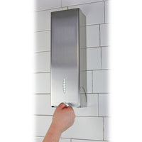 Dispensador de servilletas femeninas gratis - Capacidad de 50-70 almohadillas / Gris / Acabado cepillado en acero inoxidable.