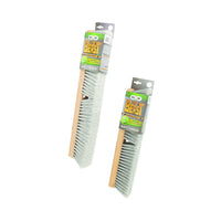 Los cabezales de escoba comerciales de alta resistencia vienen en un bloque de madera de 1 pulgada de espesor con 2 orificios para la inversión del mango roscado que incluye un soporte para mayor resistencia: The Beast™. El bloque tiene esquinas redondeadas para evitar abolladuras y aumentar la longevidad. También presenta el relleno más completo posible sin fibras rizadas utilizadas para espesar artificialmente el bloque. Los cabezales de escoba vienen con cerdas que tienen extremos divididos para disminuir la rigidez y agregar retención de polvo.