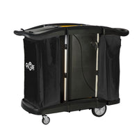 El carrito de limpieza de alta capacidad está diseñado con una capacidad expandida que permite más opciones de personalización y ofrece seguridad para todos los artículos con sus 2 puertas de gabinete con cerradura. Cuenta con agarraderas cómodas en ambos lados del carrito que están diseñadas para una maniobrabilidad optimizada y optimizar su tiempo.