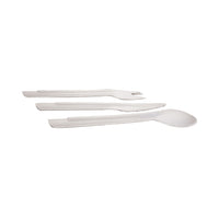 Fourchette, couteau, cuillère et serviette en bois dans un sac en papier - 6,5" X 2,75" X 0,25" / Blanc