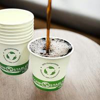 Les gobelets 100 % compostables favorisent les pratiques d'achat durables comme alternative aux gobelets traditionnels en papier, en plastique et en polystyrène. Nos gobelets sont doublés de PLA qui est une bio-résine renouvelable à base de maïs. En tant que doublure, elle résiste aux fuites et est utilisée à la place de la doublure typique à base de pétrole. Ces tasses à café chaudes classiques non toxiques sont les meilleures du marché, ce qui les rend idéales pour servir du café, du thé et d'autres boissons torrides.