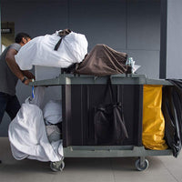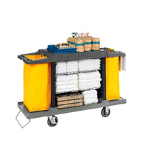 Utilisez un chariot de ménage parfait pour tous vos besoins de nettoyage. Ce chariot est parfait pour le personnel d'entretien dans les hôtels, les écoles, les bureaux et les épiceries. Votre personnel appréciera de pouvoir organiser toutes ses fournitures de nettoyage en un seul endroit, ce qui facilitera son travail lorsqu'il accomplira des tâches dans de grands bâtiments.
